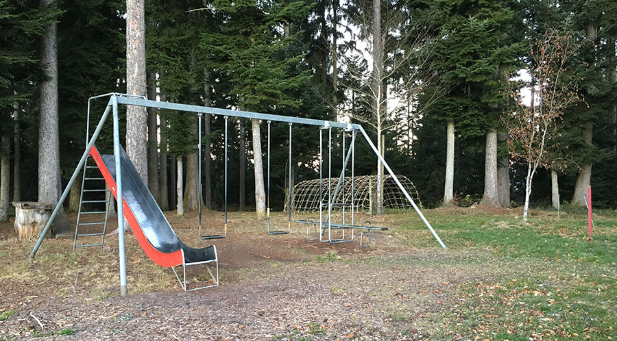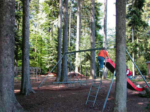 Zum Glück gehört zum Gasthaus ein toller Kinderspielplatz.